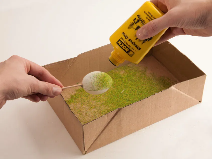 Cu ajutorul flaconului aplicator (cu puffer) poți aplica iarba de la NOCH cu lungimi de 1,5 mm și 2,5 mm într-un mod natural și realist. În timpul aplicării, fibrele de iarbă sunt încărcate electrostatic și se așază vertical pe suprafața acoperită cu adeziv.